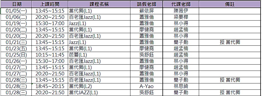 2026.1月代課公告 (12月代課請參考最新消息!)